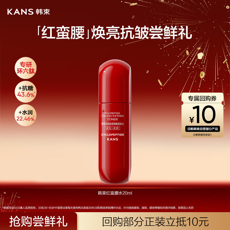韩束红蛮腰多肽胶原弹嫩柔肤水20ml补水保湿抗皱胶原弹嫩旅行装小样