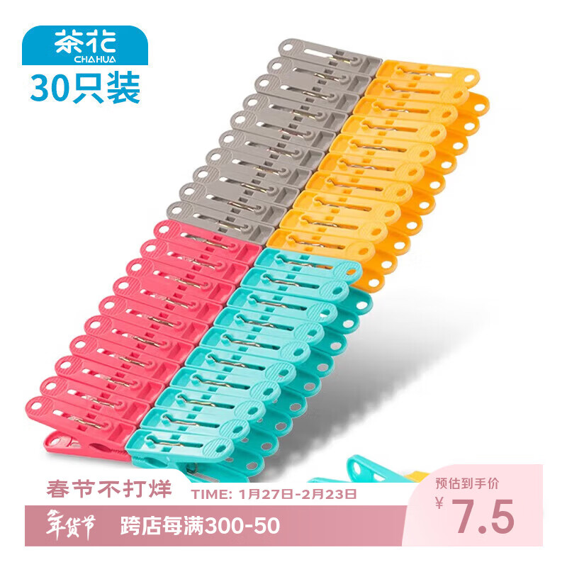 茶花衣架夹子晾衣夹子 夹衣服晒衣夹床单防风夹大夹子袜夹被夹 30只
