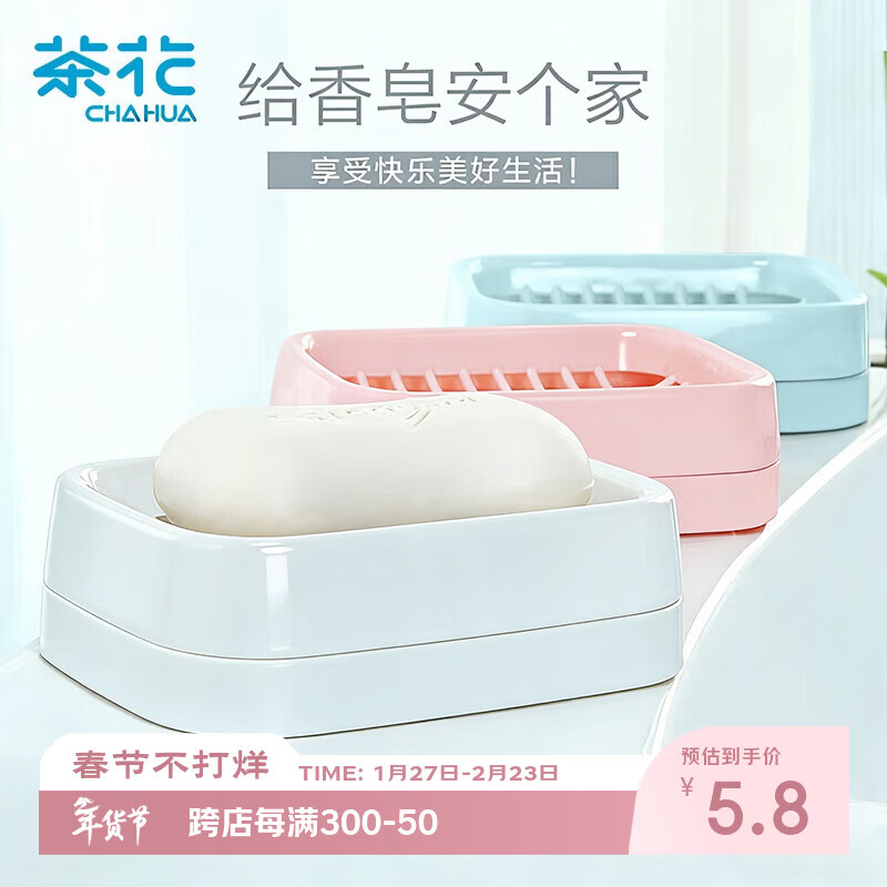 茶花 肥皂盒 皂碟香皂架子肥皂架 双层沥水香皂盒子白色1只装