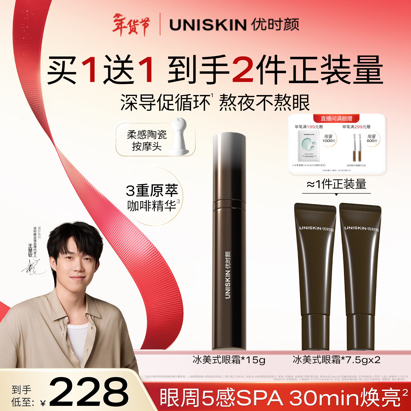 优时颜(UNISKIN)【王楚钦同款】冰美式眼霜保湿修护紧致眼部精华霜生日情人节礼物