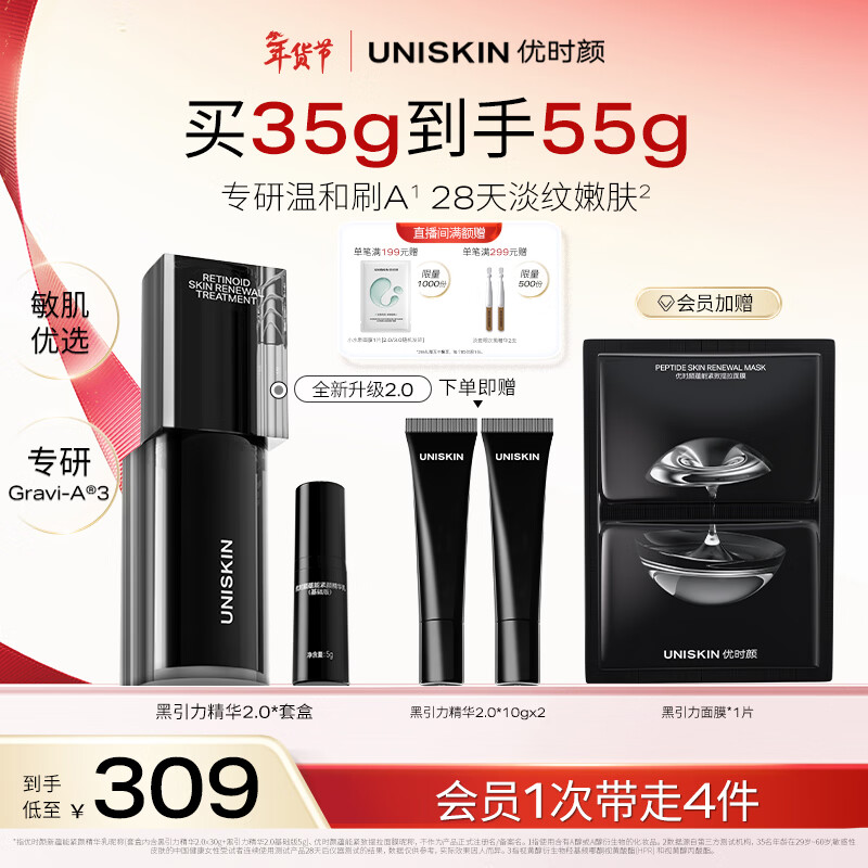 优时颜(UNISKIN)黑引力精华2.0套盒30g紧致保湿淡纹A醇抗皱实用情人节礼物