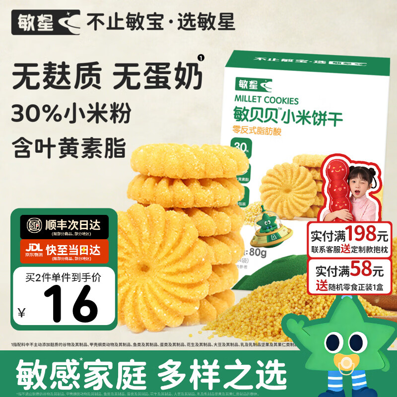 敏星玉米黑米小米饼干无小麦麸质不添加蛋奶休闲零食送敏宝婴儿童食谱 小米饼干80g*1盒
